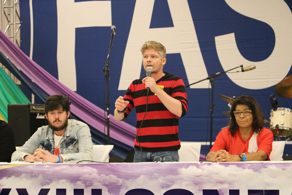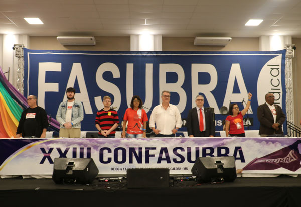 Na noite desse domingo (06), iniciou, em Poço de Caldas-MG, o 23º Confasubra, Congresso Nacional da Fasubra que definirá um plano de lutas para a Federação e a nova gestão para o biênio 2018-2020. Na mesa de abertura estiveram presentes os atuais coordenadores da Fasubra, Gibran Jordão, Léia de Souza e Rogério Marzolla, além de representantes da Associação Nacional dos Dirigentes das Instituições Federais de Ensino Superior (Andifes) CSP Conlutas, CTB (Central dos Trabalhadores Brasileiros), CUT (Central Única dos Trabalhadores), Intersindical.