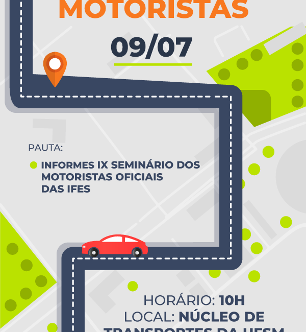 A Assufsm convida a todos os técnico-administrativos em educação motoristas para participarem da reunião do GT Motorista que acontece na próxima segunda-feira, dia 09, às 10h, no Núcleo de Transportes da UFSM. A pauta do encontro são informes sobre o 9º Seminário dos Motoristas Oficiais de Veículos Federais, que aconteceu em Belo Horizonte, de 28 a 30 de junho.