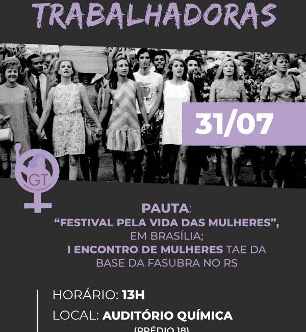 Na pauta estão o “Festival pela Vida das Mulheres” e o I Encontro de Mulheres TAE da base da Fasubra no RS.