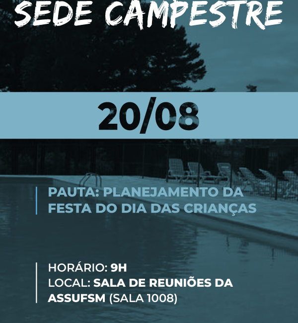 A Assufsm convida a todos e todas técnico-administrativas em educação filiadas para participarem da reunião da Comissão da Sede Campestre, na próxima segunda-feira, 20, às 9h. Na pauta esta o planejamento da Festa do dia das Crianças.