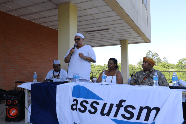 O presidente da União da Umbanda e Afro Cavalheiros de Cristo de Santa Maria, Henrique Babalorixá de Oxalá saudou a mesa e a presença de todos e todas. Durante sua fala, enfatizou a luta pelo respeito às religiões afro-brasileiras. “Nós engajamos numa luta para que nossa religião tivesse respeito como é devido com o senhor ou a senhora branca ou preta. Dentro da nossa religião, sendo branco ou preto já existe o carma africano de ser escravo”, explica o Babalorixá reforçando os estigmas e preconceitos que permeiam a intolerância religiosa no Brasil. Para ele, a melhor forma de combate a isso é a união entre os irmãos e irmãs, pois “unidos teremos força, luz e caminho”, finaliza.