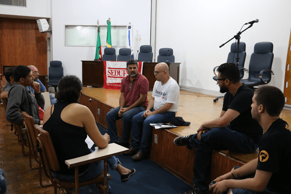 Na última semana, a Assufsm participou de uma roda de conversa chamada pela Frente Única de Trabalhadores e Trabalhadoras que vem se articulando e realizando reuniões para debater possíveis formas de lutar contra o atual cenário. A atividade aconteceu no Auditório do Gulerpe, no Hospital Universitário de Santa Maria.