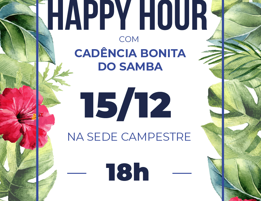 A Assufsm convida a todos e todas para participarem de mais um Happy Hour na Sede Campestre! Neste sábado, a Temporada de Verão Assufsm será embalada pelo samba da banda Cadência Bonita do Samba, a partir das 18h. Além disso, ainda tem a aula de Hidroginástica, das 17h às 18h.
