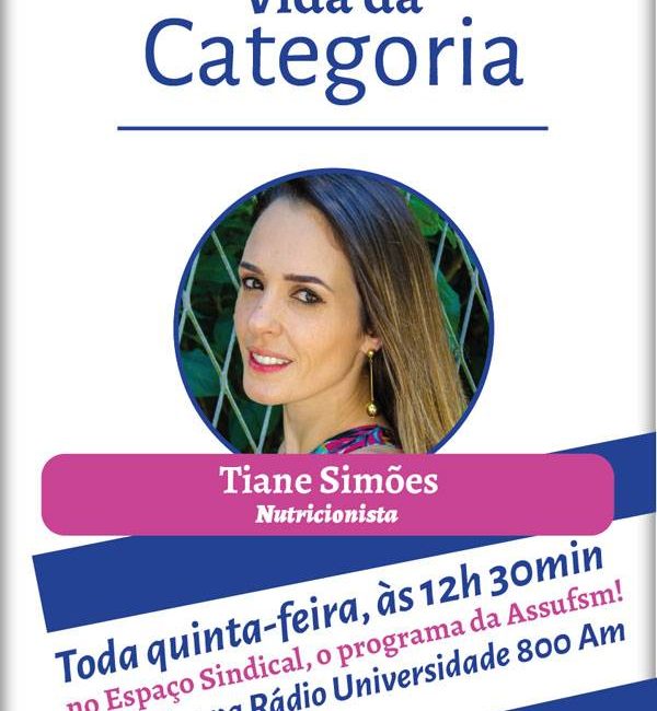 Nesta quinta-feira (26), você conhece a história da técnico-administrativa em educação nutricionista Tiane Simões, às 12h30, na Rádio Universidade 800AM. Você também pode acompanhar, ao vivo, pelo facebook da Assufsm ou online pelowww.ufsm.br/radio