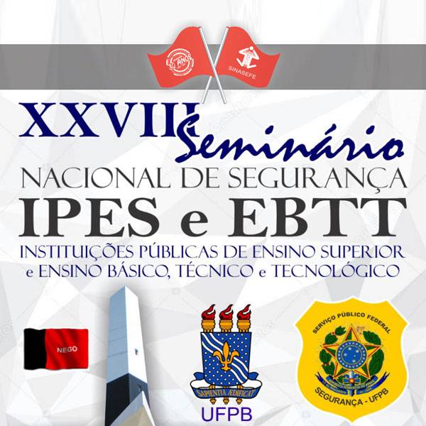 O 28º Seminário Nacional de Segurança das Instituições de Educação IPES e EBTT acontece de 18 a 23 de novembro, no Auditório Multimídia do Centro de Tecnologia da UFPB (campus I), em João Pessoa-PB. Dentre as pautas de discussão do seminário estão a segurança pública; a conjuntura nacional; a autonomia das Instituições Federais de Ensino (IFEs); as Reformas Trabalhista e da Previdência; o Programa Future-se; a auditoria da dívida pública; o aumento de violência nas IFEs; direitos humanos, entre outros temas.
