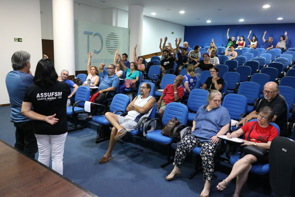 Na segunda-feira (9), técnico-administrativos e administrativas em educação se reuniram no Auditório Pércio Reis para retirar delegados e delegadas para a Plenária da Fasubra. Em regime de votação foi definido que a Assufsm levará 4 representações para a atividade.