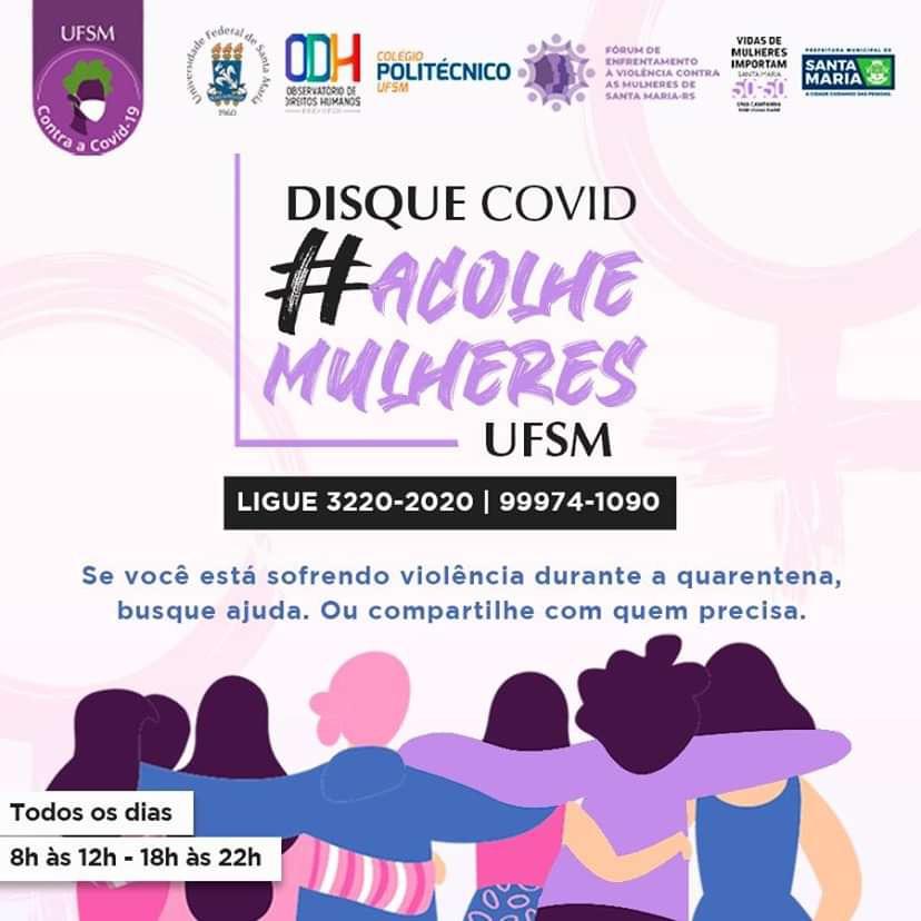 Dentre os canais de atendimento e suporte a essas vítimas, Nikelen Witter destaca o Disque Covid Acolhe Mulheres UFSM. A iniciativa aconteceu no interior do Projeto de Extensão Fórum de Enfrentamento à Violência Contra Mulheres de Santa Maria e ganhou força com o Observatório de Direitos Humanos da UFSM. “É importante procurar a ajuda. Este canal surgiu para garantir que as mulheres possam ter um amparo e buscar ajuda de pessoas especializadas para dar esse suporte”, comenta a professora de História.