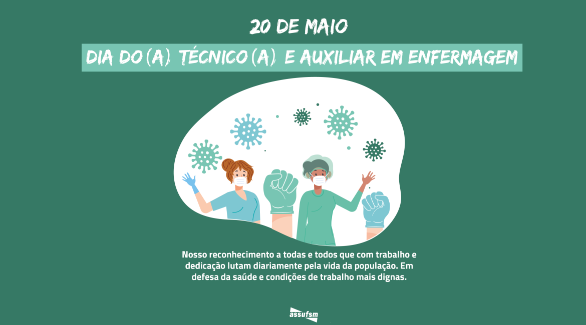 Nesse dia 20 de maio a Assufsm gostaria de saudar a todos e todas Auxiliares e Técnicos (as) de Enfermagem que todos os dias ajudam a salvar vidas, e que neste momento tem um papel crucial no combate ao COVID-19.