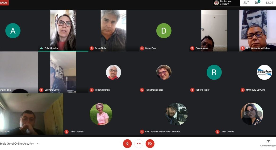 Ao longo de mais de duas horas de duração da Assembleia Geral Online, técnico administrativos e administrativas em educação ativos, aposentados(as) e pensionistas e coordenadores(as) da Assufsm puderam conversar, debater ideias e, também se rever, seguindo os protocolos recomendados pela Organização Mundial de Saúde (OMS) de não aglomeração presencial.