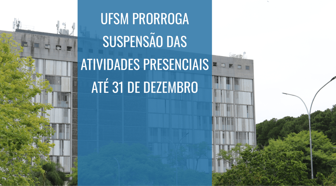 Através da portaria normativa n°. 004, de 27 de novembro de 2020, a UFSM suspende as atividades acadêmicas e administrativas presenciais até 31 de dezembro de 2020.