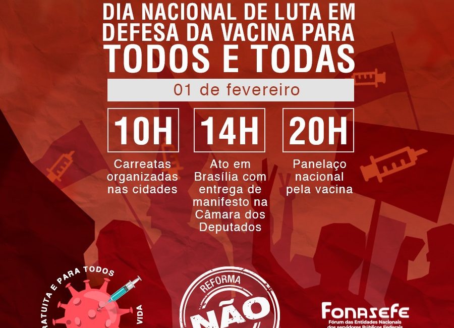 Em manifestações unificadas, centrais e entidades sindicais, entre elas a FASUBRA Sindical, além de movimentos sociais e fóruns estaduais vão destacar os temas “Em defesa da vacina para todos e todas, contra a reforma administrativa e as privatizações”.