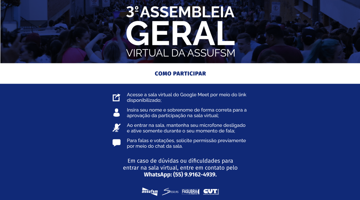 Faça parte da Terceira Assembleia Geral Virtual da Assufsm!