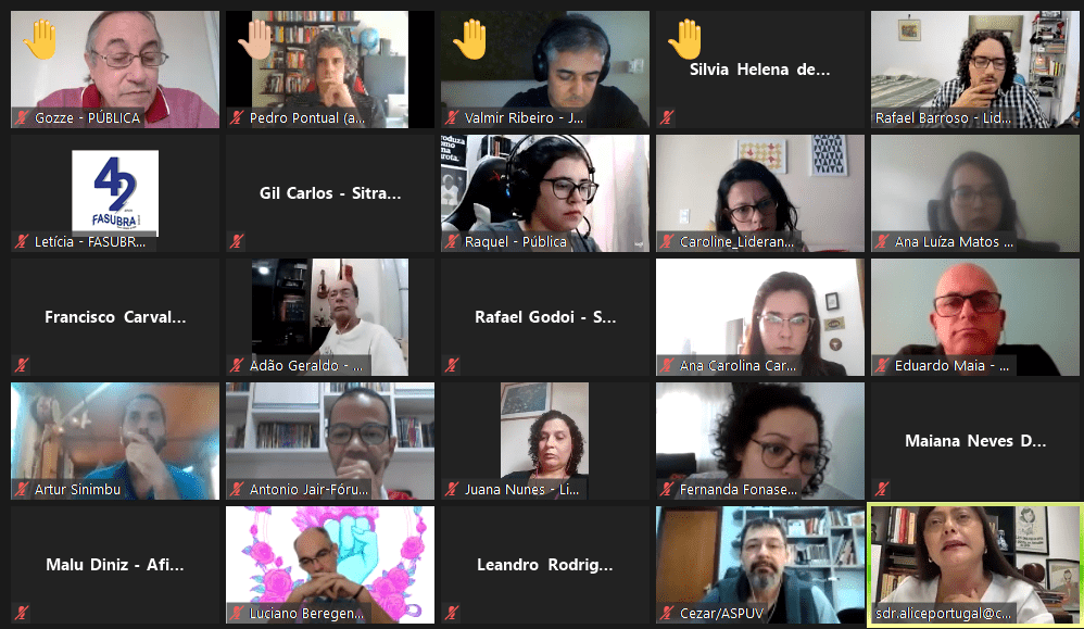 A FASUBRA Sindical participou de reunião virtual com a Liderança da Minoria na Câmara dos Deputados, dirigentes sindicais do FONASEFE e parlamentares das frentes em defesa do serviço público na sexta-feira (16). O encontro discutiu ações unificadas de comunicação e estratégias contra a PEC (Proposta de Emenda à Constituição) 32/2020 e também a MP (Medida Provisória) 1042/2021, editada no dia 15/4, que antecipa medidas da reforma administrativa e atropela a Constituição.