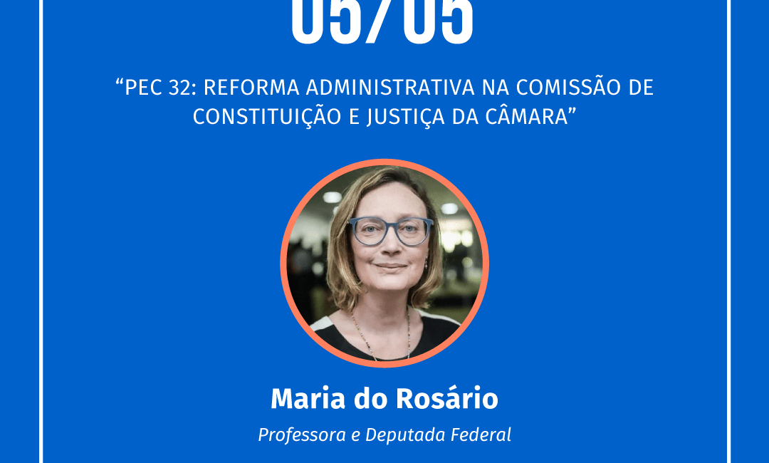 A Live Sindical da próxima quarta-feira (05) de maio, às 13h, pelo facebook da Assufsm, vai tratar sobre a PEC 32, a Reforma Administrativa na Comissão de Constituição e Justiça (CCJ) da Câmara. E para falar sobre o assunto, a convidada para o bate-papo é a Deputada Federal Maria do Rosário. A pauta principal é sobre a reunião que ela vai participar na terça-feira (04) na CCJ.