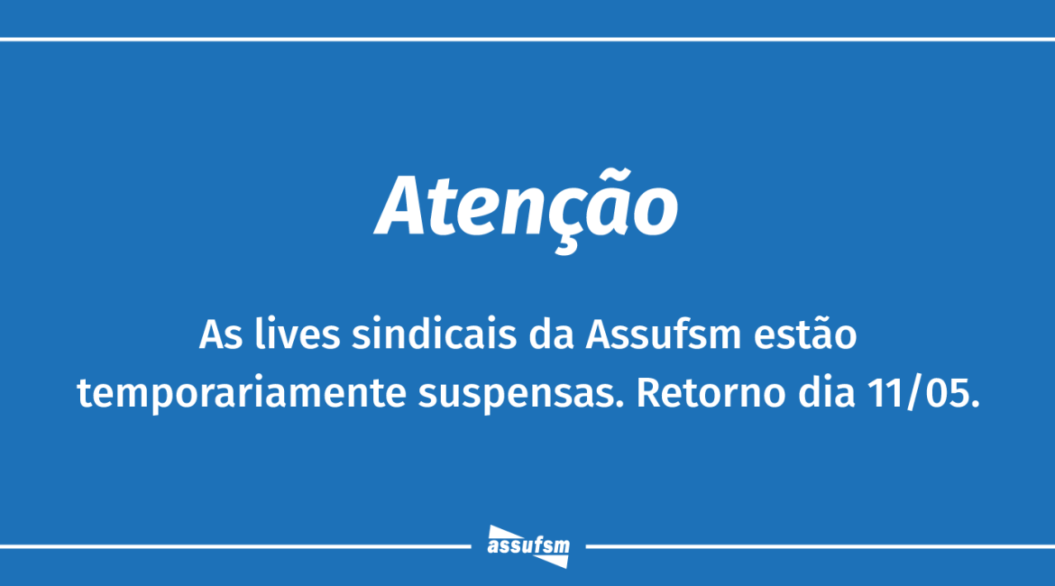 O Setor de Comunicação da Assufsm informa que as Lives Sindicais estão suspensas nos próximos dias. Nós retornamos com a programação normal no dia 11 de maio.