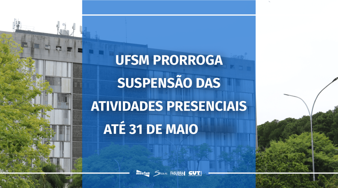 Através da Portaria Normativa nº. 023, de 28 de abril de 2021, a UFSM prorroga a suspensão das atividades acadêmicas e administrativas presenciais até 31 de maio de 2021. As atividades consideradas essenciais permanecem em funcionamento, bem como as aulas, através do Regime de Exercícios Domiciliares Especiais (Rede). As demais atividades administrativas podem ser restabelecidas presencialmente, a critérios dos setores e respectivas chefias, respeitadas as medidas protetivas básicas de uso de máscara, não aglomeração em salas, distanciamento social e higienização frequente das mãos, excetuados, neste caso, os servidores pertencentes aos grupos de risco. Ressalta-se que os(as) docentes e técnico-administrativos(as) em educação deverão permanecer à disposição da instituição no horário de trabalho habitual, de modo a possibilitar o exercício de suas atividades de forma presencial ou remota, garantindo a continuidade do funcionamento e finalidade da Instituição.