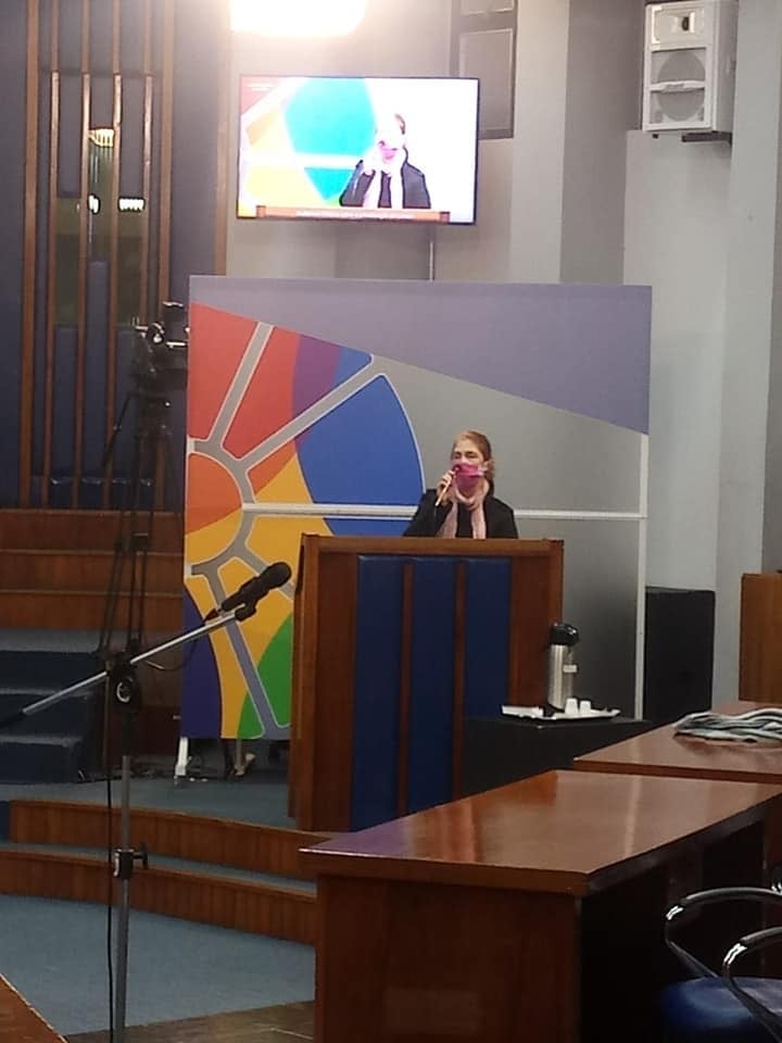A Técnica Administrativa em Educação e Coordenadora Geral da Assufsm Loiva Chansis também foi até a tribuna para o debate. Ela reforça o posicionamento de não à privatização da CORSAN.