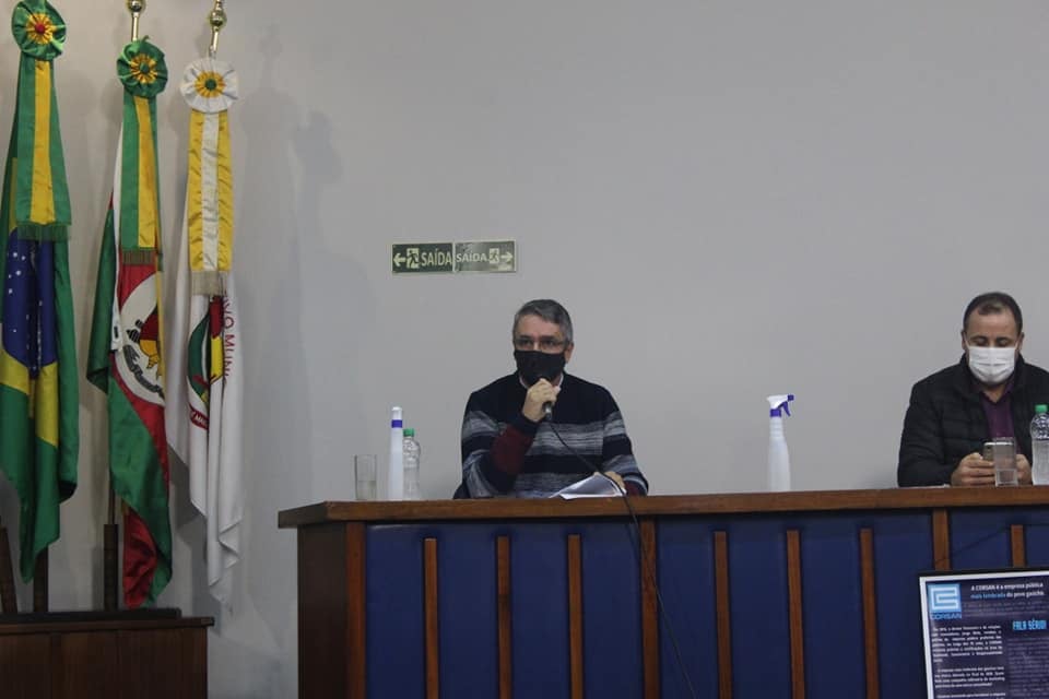 A mesa representativa foi composta pelo presidente da CPPARD, vereador Adelar Vargas – Bolinha, os parlamentares Helen Cabral, Alexandre Vargas, Anita Costa Beber, Marina Callegaro, superintendente regional da Corsan, Engenheiro José Epstein e o representante do DCE, Felipe Mainardi.