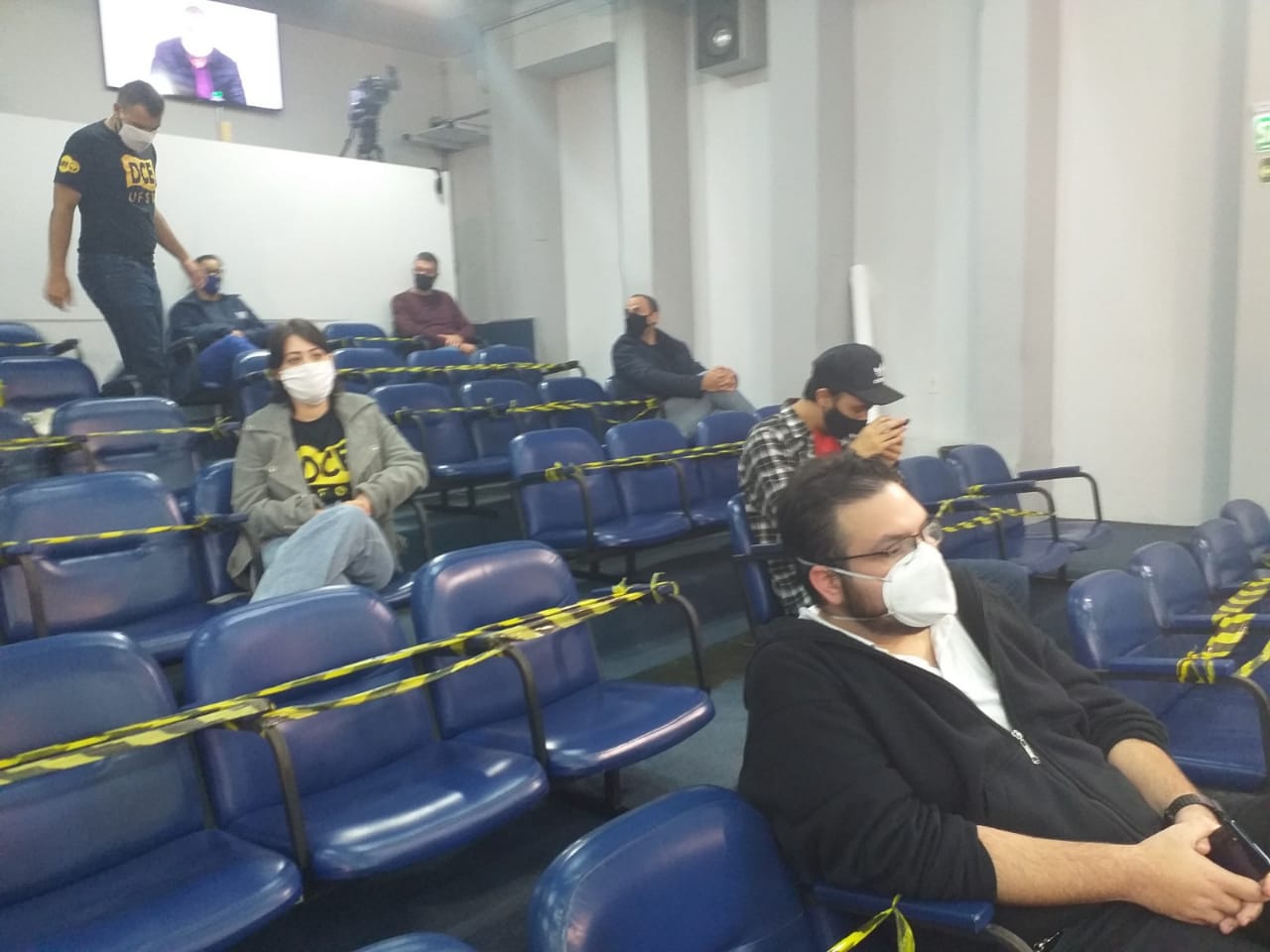 Esta foi a primeira Audiência Pública na Casa Legislativa desde o retorno das atividades presenciais, com a limitação de espaço, medição da temperatura, higienização dos aparelhos usados nos períodos de fala, uso obrigatório de máscara e álcool gel.