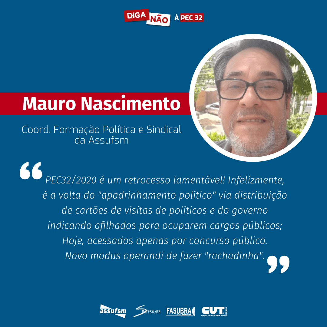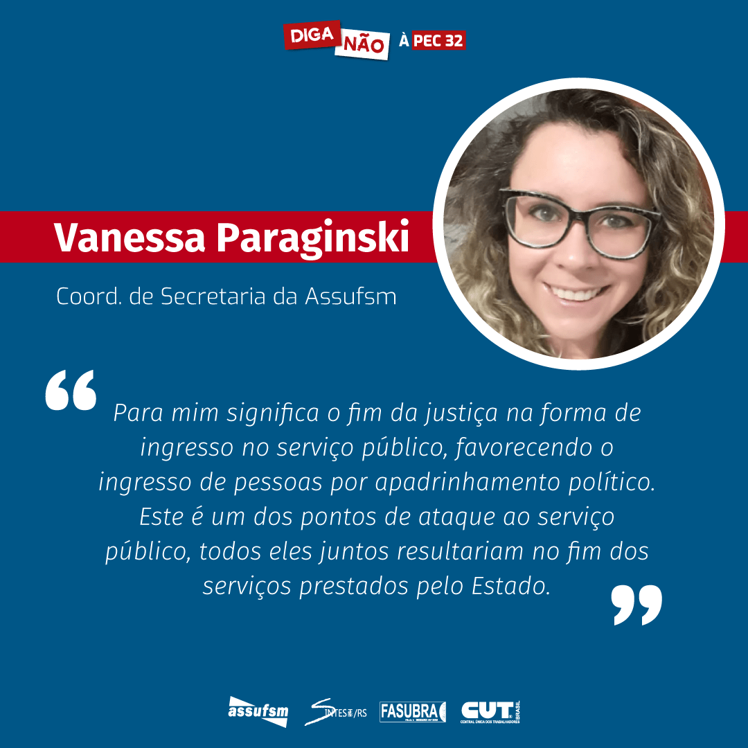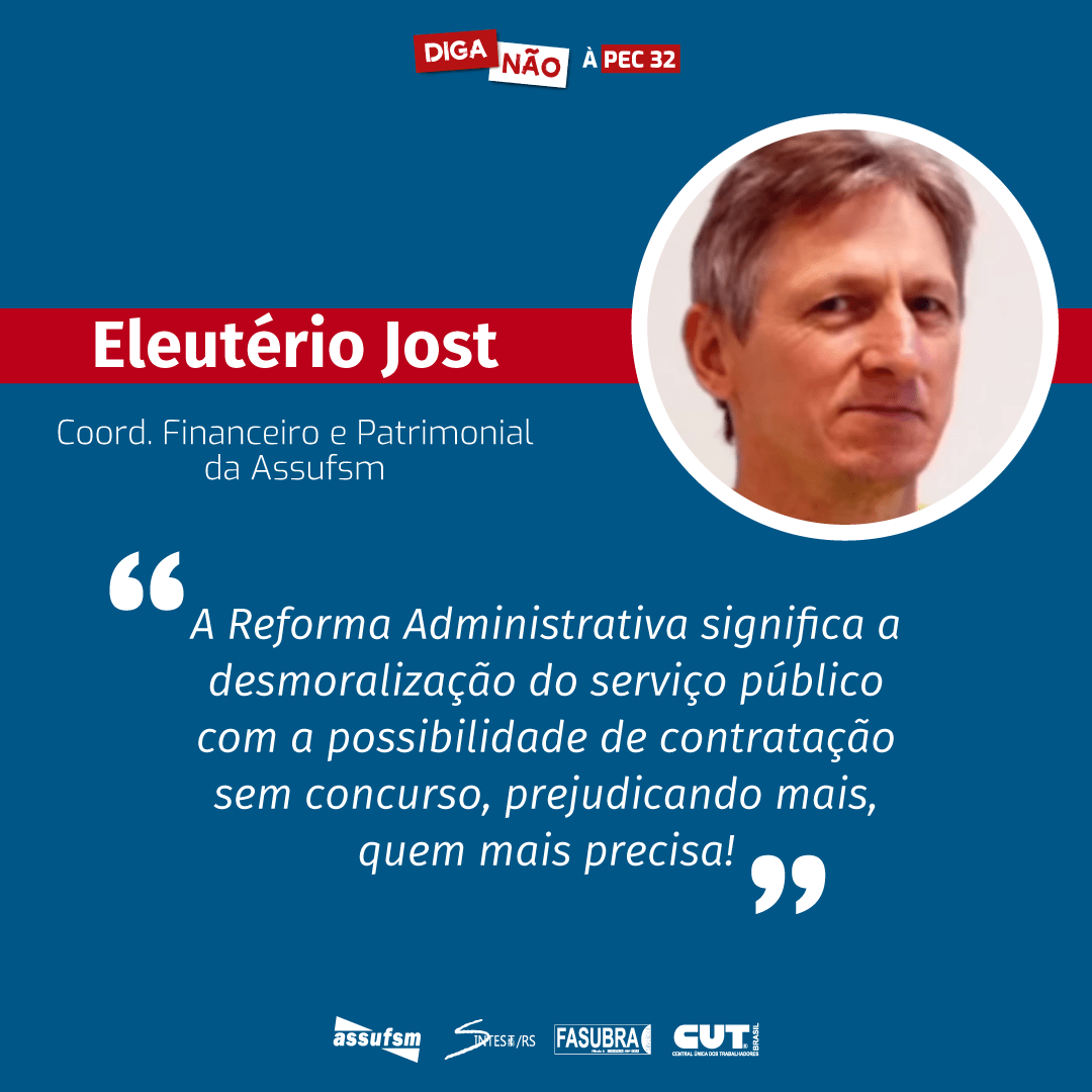 As Coordenadoras Gerais da Assufsm Loiva Chansis e Tânia Flores são unanimes ao afirmar que a PEC 32 é a destruição do Estado, é a destruição do Serviço Público. Para elas, e para os e as Coordenadoras do Sindicato que participaram, enviando seus posicionamentos, a Reforma Administrativa vai prejudicar a saúde e a educação do povo brasileiro.