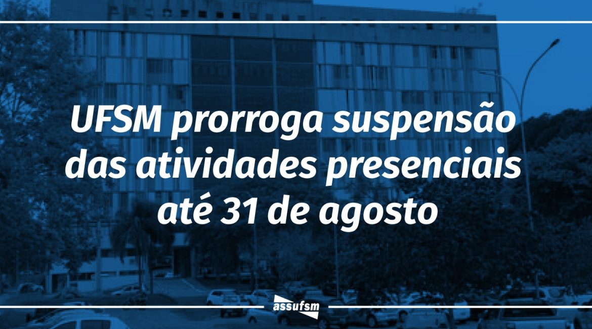 Através da Portaria Normativa nº. 024, de 27 de maio de 2021, a UFSM prorroga a suspensão das atividades acadêmicas e administrativas presenciais até 31 de agosto de 2021.