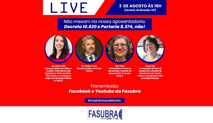 FASUBRA realiza live sobre decreto 10.620, que trata da concessão e a manutenção das aposentadorias e pensões do RPPS