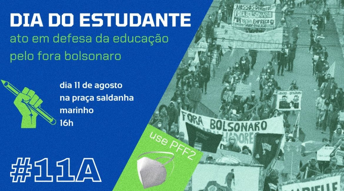 Nesse cenário, só a luta faz valer. Por isso, convocamos todas e todos que foram ou são estudantes, que defendem a educação, a ciência e a vida, para se somarem a nós no 11A, e também na luta pelo Fora Bolsonaro. Vamos lutar pelo fim da EC 95 do Teto de Gastos, contra os cortes e por mais investimentos na Educação e no SUS, contra à Reforma Administrativa e à Privatização dos Serviços Públicos, por vacina para todos, renda básica emergencial, empregos, aumento salarial, redução do preço da passagem, e pelo FORA BOLSONARO E MOURÃO!