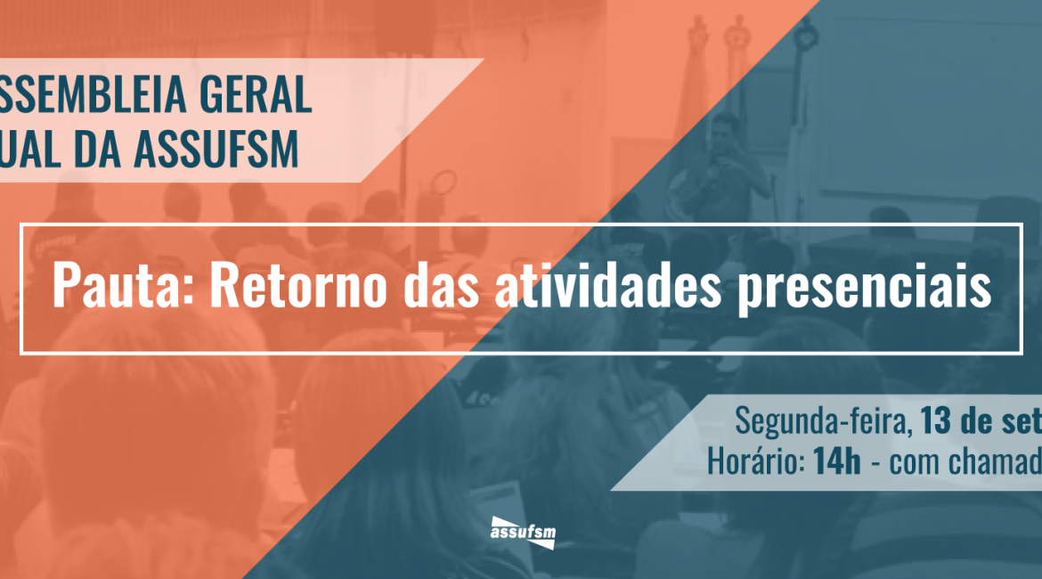 A Coordenação da Assufsm está convocando Técnico Administrativos e Administrativas em Educação da UFSM para sua Sexta Assembleia Geral Virtual do Sindicato, no dia 13 de setembro, com chamada única, às 14h. O encontro online chamado às pressas é para debater o retorno presencial em meio a pandemia da Covid-19.