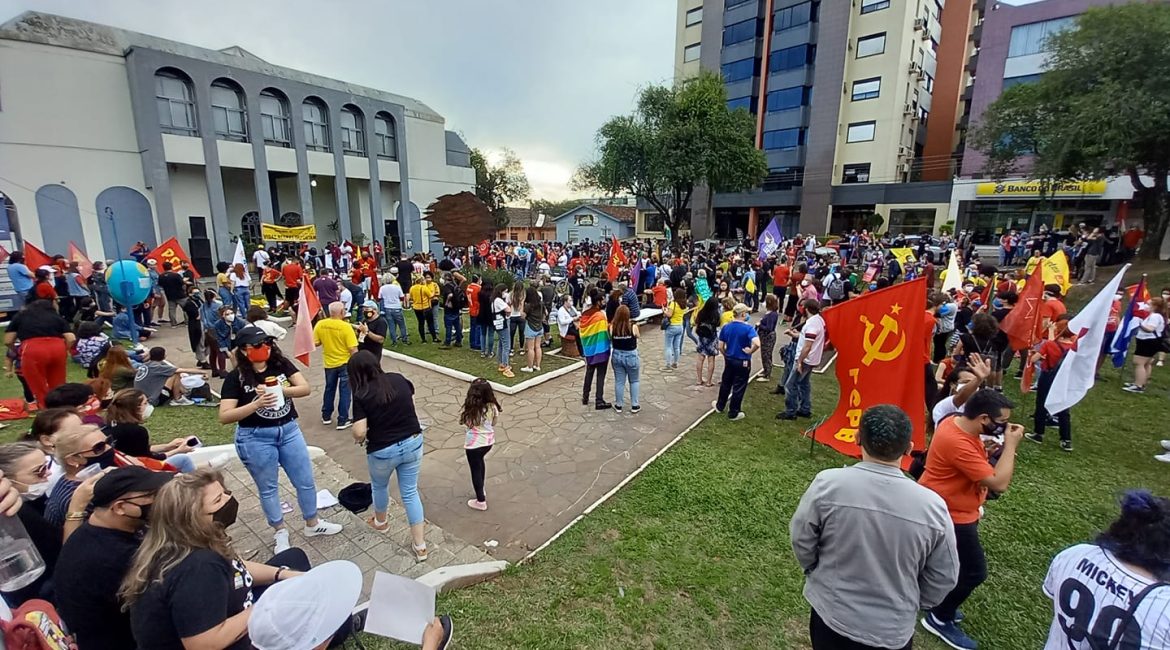 Centenas de jovens, trabalhadores e trabalhadoras, militantes políticos(as) e ativistas sociais reuniram-se no Largo da Locomotiva, em Santa Maria, na ensolarada tarde de sábado (02), em mais um ato Fora Bolsonaro para protestar contra as políticas que o governo Bolsonaro e seus aliados vêm implementando ou intencionando implementar.