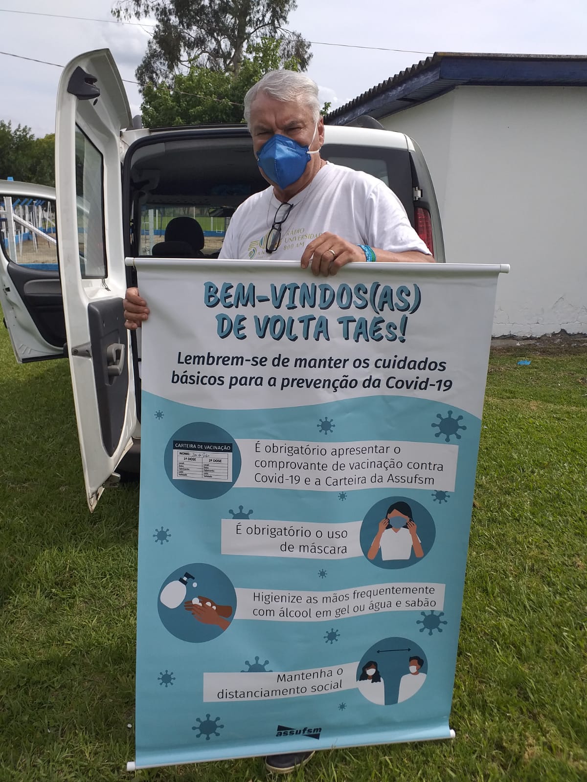 Com intuito de orientar a todos, todas e todes, o setor de comunicação da Assufsm confeccionou cartazes e banners para serem colocados na sede campestre, com orientações de boas vindas aos filiados e filiadas.