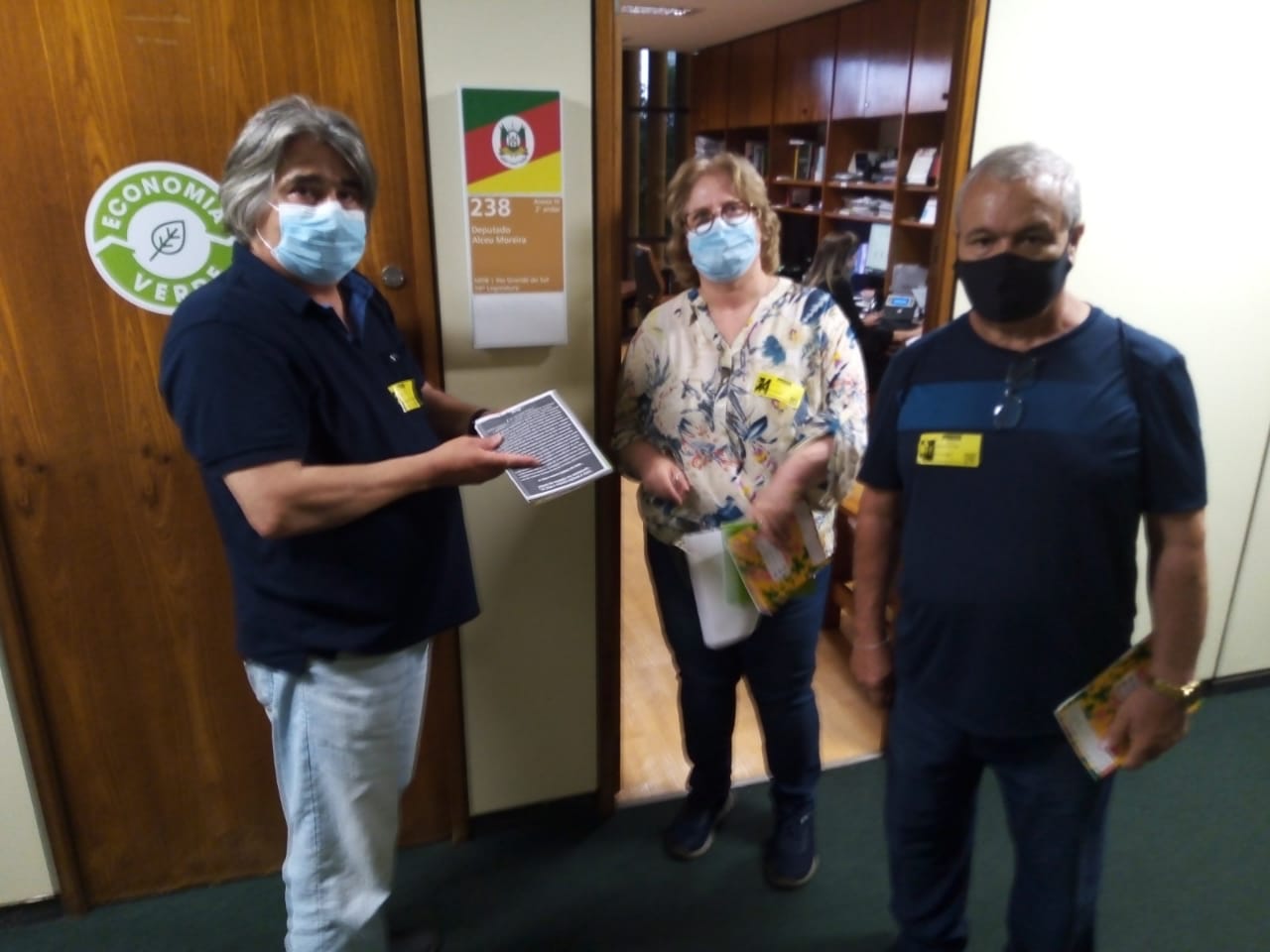 Foto:Integrantes da Comitiva da Assufsm em Brasília panfletando nos gabinetes dos e das Deputadas Gaúchas