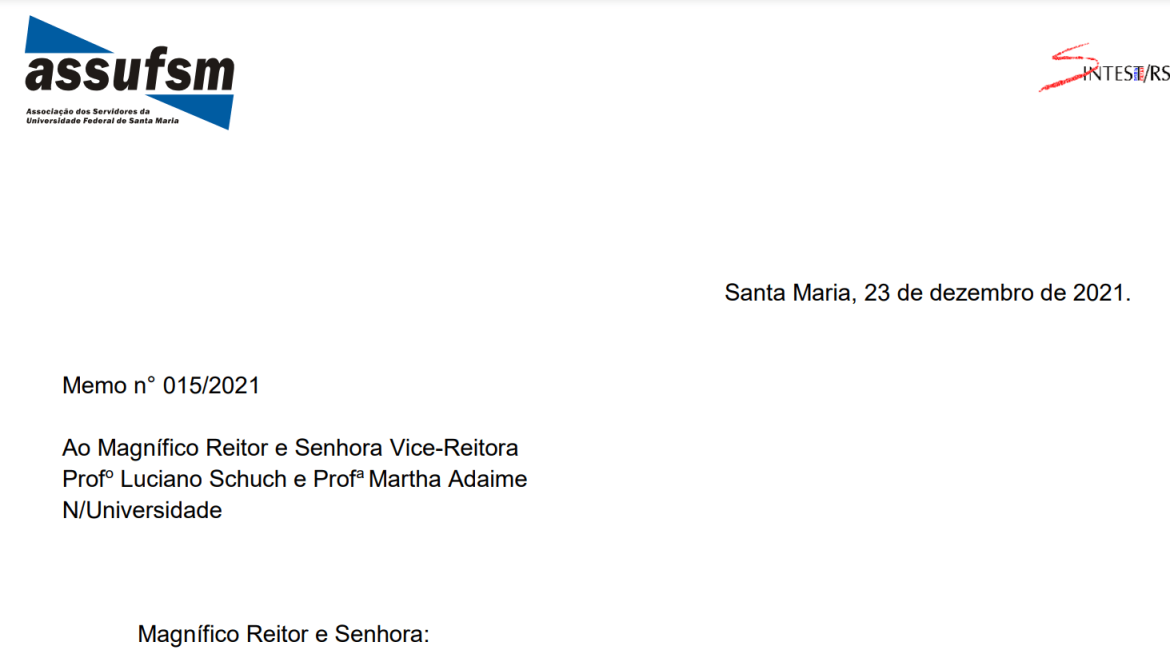 Assufsm envia memorando solicitando diálogo com a nova gestão da UFSM