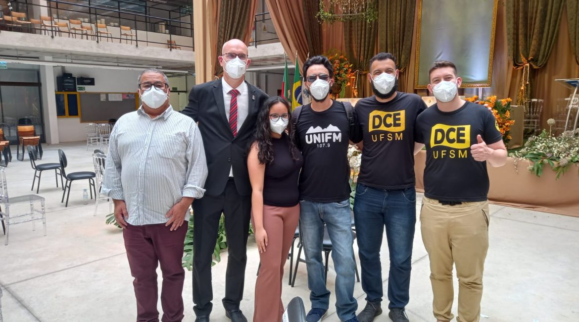 A solenidade de transmissão do cargo de reitor da UFSM para o professor Luciano Schuch e a posse da professora Martha Bohrer Adaime como vice-reitora e da equipe de gestão da Universidade pelos próximos quatro anos ocorreu na manhã de sábado (8), no prédio 9F do Campus Sede, em Camobi. Schuch já havia sido empossado pelo ministro da Educação, Milton Ribeiro, em cerimônia virtual realizada na última quarta (5), após a publicação do Decreto Presidencial de nomeação do reitor da UFSM no Diário Oficial da União. Em uma solenidade presencial restrita e transmitida pelo canal da UFSM no YouTube, Rádio Universidade e UniFM, a transmissão do cargo de reitor foi simbolizada pela transferência do colar reitoral do professor Paulo Afonso Burmann para Schuch, procedida pelo chefe de Gabinete, professor Eduardo Rizzatti. Após, Schuch deu posse à vice-reitora, a professora Martha Adaime. Na sequência, foram reconduzidos aos respectivos cargos os pró-reitores de Administração, administrador José Carlos Segalla; de Extensão, professor Flavi Ferreira Lisboa Filho; e de Graduação, professor Jerônimo Siqueira Tybusch. Por fim, tomaram posse e assinaram os termos os pró-reitores de Assuntos Estudantis, professora Gisele Martins Guimarães; de Infraestrutura, professor Mauri Leodir Löebler; de Gestão de Pessoas, professor Daniel Arruda Coronel; de Planejamento, professor Rafael Lazzari; e de Pós-Graduação e Pesquisa, professora Cristina Wayne Nogueira. Entidades Representativas A Assufsm esteve representada pelo seu Coordenador de Formação Política e Sindical Eloiz Cristino. Em entrevista para o Setor de Comunicação da Assufsm, ele afirma que a Cerimônia de Posse cumpriu todos os protocolos sanitários e que alguns discursos chamaram atenção dos presentes, como o do antigo reitor Paulo Burmann, do atual reitor Luciano Schuch e da professora e vice-reitora Martha Adaime. “O discurso de Burmann foi um tanto quanto contraditório, pois ele alega que sua gestão foi participativa e democrática e nós sabemos das dificuldades que tivemos em dialogar com a gestão de Burmann. O professor Schuch agradeceu partidos e deputados que estão ao lado do atual governo e se quer agradeceu as entidades representativas da Universidade que lutaram para que o reitor eleito fosse o reitor empossado. Já a vice-reitora Martha chamou a atenção para ser a primeira mulher em cargo de de reitoria na nossa UFSM e ressaltou a importância da presença da mulher dentro de cargos do primeiro escalão da Universidade, com 50% de mulheres na equipe da nova gestão”, afirma Eloiz. Ainda de acordo com ele, as entidades de luta terão desafios à serem enfrentados durante a gestão de Schuch, visto o apoio demonstrado para com o atual governo de Jair Bolsonaro. O representante do Diretório Central dos e das Estudantes Luiz Bonetti também conversou com o Setor de Comunicação da Assufsm e reforça sobre o apoio e presença de personalidades de direita durante a Cerimônia de Posse da nova gestão 2022-2025 da UFSM. “A gente percebeu, durante a passagem de cargo, várias presenças de lideranças bolsonaristas. Essas presenças simbolizam a realidade de algo que já se vinha percebendo, e o que fica para nós é isso, eles estão querendo disputar a nossa universidade. Nós vamos ter muitos desafios ao longo dessa gestão, para defender a Universidade da maneira a qual acreditemos que ela deva ser, pública, gratuita e de qualidade, que atenda aos interesses do povo, e produza ciência voltada para os interesses da população e não da iniciativa privada”, defende Bonetti. Para ele, a posse da nova gestão traz impacto positivo, de que a luta vale a pena. “Se hoje temos a nomeação do Luciano, se deve pela luta das categorias e entidades que se colocaram em prontidão para fazer com que a democracia universitária prevalecesse, por mais atacada que ela esteja sendo frente ao Governo Federal”, afirma ele. “Estamos mudando esta realidade. Somos, nesta gestão, 50% de mulheres” Primeira mulher a ocupar um cargo na Reitoria da UFSM, Martha fez referência, em seu pronunciamento, à participação de destaque das mulheres no dia a dia da Instituição. “Apesar dos 61 anos da UFSM e de sermos a 10ª universidade do mundo que mais produz ciência pelas mãos de mulheres, ainda não havíamos chegado a um cargo da alta administração, e não foi por falta de esforço”, disse, saudando gestoras que ocuparam seus espaços pregressamente. “Boas gestoras precisam aproveitar oportunidades, enfrentar o machismo estrutural que, espero, a cada dia perde forças”, acrescentou, citando a professora Cristina Nogueira, que integrou, com Martha e Schuch, a lista tríplice encaminhada ao Ministério da Educação. Ao assumir a Pró-Reitoria de Pós-Graduação e Pesquisa, Cristina ajuda a fazer história. “Estamos mudando esta realidade. Somos, nesta gestão, 50% de mulheres. Não somos melhores, somos igualmente capazes, e tenho convicção de que podemos contribuir muito para uma gestão compartilhada”, afirmou Martha. Em sua fala, Martha agradeceu à família, aos colegas, aos mais de cinco mil alunos que teve na UFSM em 32 anos e aos demais membros da lista tríplice, Cristina e Schuch, pela parceria sólida na construção do projeto que se estenderá pelos próximos anos. Também destacou diretrizes que a nova gestão pretende seguir. “Uma nova jornada inicia-se agora. Reafirmamos nosso compromisso com o desenvolvimento institucional na busca de inovação tecnológica, na inclusão, acesso e permanência, do fortalecimento da nossa relação com a comunidade, para que nossa Universidade, que é socialmente referenciada, cumpra sua missão de instituição pública extremamente qualificada. Temos consciência que, além de prospectar novas ações, devemos facilitar ações dos nossos atores, docentes, técnico-administrativos em educação e estudantes, cujo papel é fundame