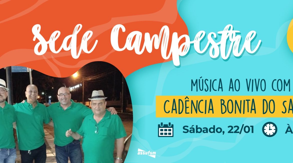 Após a Abertura Oficial das Piscinas, na Sede Campestre, com o cantor Janu Uberti, agora é a vez do grupo Cadência Bonita do Samba divertir os e as filiadas da Assufsm, com muita música, a partir das 17h do próximo sábado, dia 22 de janeiro.
