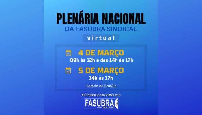 FASUBRA realizará Plenária Nacional Virtual nos dias 4 e 5 de março