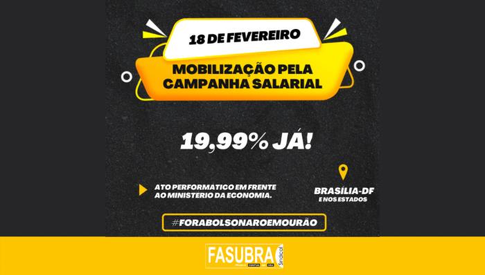 A mobilização pela campanha salarial emergencial continua na próxima semana com a Jornada de Lutas – em estado de greve. De 14 a 25 de fevereiro, as trabalhadoras e trabalhadores do serviço público realizam ações unificadas dos fóruns estaduais e atos nos estados para pressionar a abertura da negociação e dialogar com a população sobre a importância dos serviços públicos. No dia 18/02, próxima sexta-feira, o FONASEFE definiu como parte do calendário a realização de ato em Brasília/DF, às 9h, em frente ao Ministério da Economia, e também atos nos estados onde for possível. A data marca 1 mês que as entidades protocolaram ofício com a reivindicação de reposição salarial de 19,99%, correspondente apenas às perdas inflacionárias nos três anos de governo Bolsonaro, e não obtiveram nenhuma resposta. A Direção Nacional da FASUBRA Sindical orienta as entidades de base a incorporarem o calendário construído pelo FONASEFE e atuem nos fóruns estaduais para realizarem e participarem das atividades da Semana de Mobilização, além de aderir ao Estado de Greve, no período de 14 a 25 de fevereiro, e também nos atos agendados para o dia 18/02. Apenas com a greve unificada dos SPFs será possível conquistar o reajuste e outras vitórias.