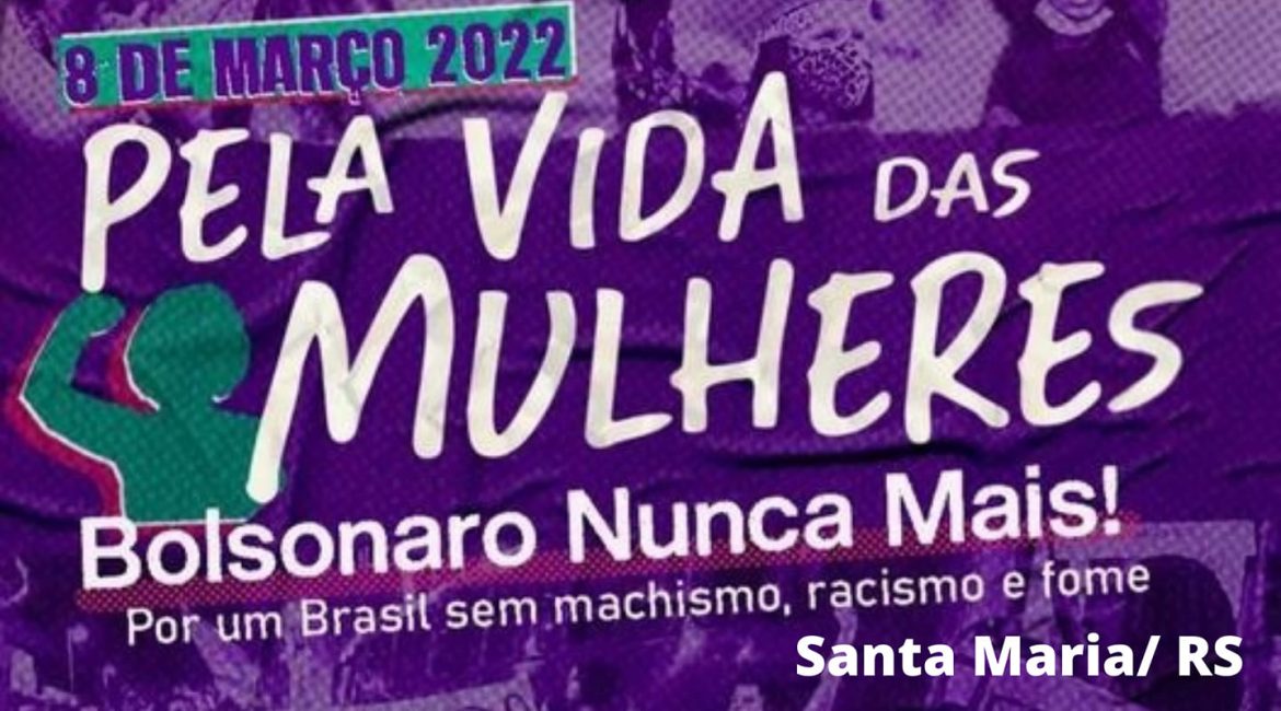 O Dia Internacional da Mulher é na próxima terça-feira, dia 8 de março, e a homenagem desse ano é em forma de luta. Em Santa Maria, o ato será às 17h, do dia 8 de março, na Praça Saldanha Marinho. Para falar mais sobre o dia de luta, confira na integra o texto que a organização do evento criou: O aprofundamento da crise econômica no Brasil e no mundo, somado à política da fome, do desemprego e da morte conduzida pelo governo. Bolsonaro, tem tornado a vida do povo ainda mais difícil, atingindo, principalmente, as mulheres da classe trabalhadora. Antes mesmo de Bolsonaro assumir o poder, nós mulheres, já ocupávamos as ruas contra a tragédia que seu projeto representava para a vida do povo brasileiro. A luta pela derrubada de Bolsonaro do poder é uma luta necessariamente feminista, anti-imperialista, anticapitalista, democrática, antirracista e anti-LGBTQIA+fóbica. É uma luta em defesa da vida das mulheres, contra a fome, a carestia, a violência, pela saúde, pelos nossos direitos sexuais, direitos reprodutivos e pela justiça reprodutiva. É uma luta em defesa do SUS e dos serviços públicos, gratuitos e de qualidade. É uma luta com a maioria que tem sofrido com a fome, com a perda de seus entes queridos, com a violência e com o desemprego. Reafirmamos o feminismo como caminho para a auto-organização das mulheres, em aliança com os movimentos sociais, na resistência e construção de uma sociedade justa e igualitária. Somos milhões e de todos os cantos deste país! Nós nunca saímos das ruas contra Bolsonaro e nelas continuaremos em defesa das nossas vidas. Dizemos: BOLSONARO NUNCA MAIS! Por tudo isso, nós, mulheres, convocamos cada uma e cada um que se compromete com a luta contra o machismo, o combate à feminização da pobreza, ao racismo, à LGBTQIA+fobia e a todas as ações que agravam a situação das mulheres no Brasil, a ocupar as ruas no dia 8 de março.