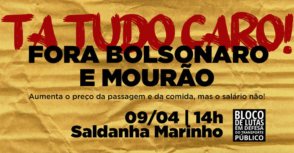Com as palavras de ordem “TÁ TUDO CARO! FORA BOLSONARO!” o Bloco de Lutas de Santa Maria chama para novo ato nas ruas da cidade no dia 9 de abril, às 14h. A concentração será na Praça Saldanha Marinho. O protesto contra o atual governo tem caráter nacional e vem sendo organizado desde o ano passado, com várias edições que levaram milhares de pessoas às ruas.