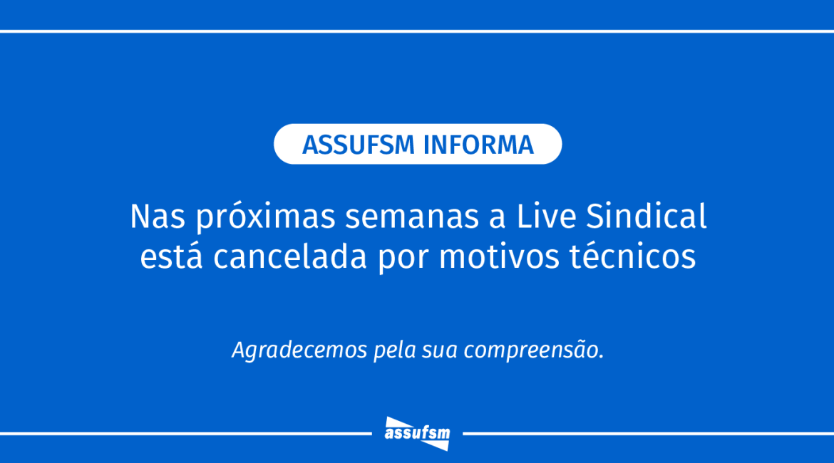 A Assufsm informa que, nas próximas semanas, está cancelando as Lives Sindicais, por motivos técnicos.