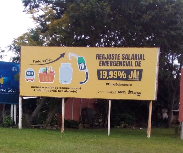 A Assufsm instalou um outdoor na rótula da Universidade Federal de Santa Maria, no seu local tradicional. Na nova campanha, o Sindicato proclama pelo “Reajuste Salarial Já”, indicando o valor altíssimo dos itens da cesta básica aos quais cidadãos brasileiros precisam arcar para sobreviver.