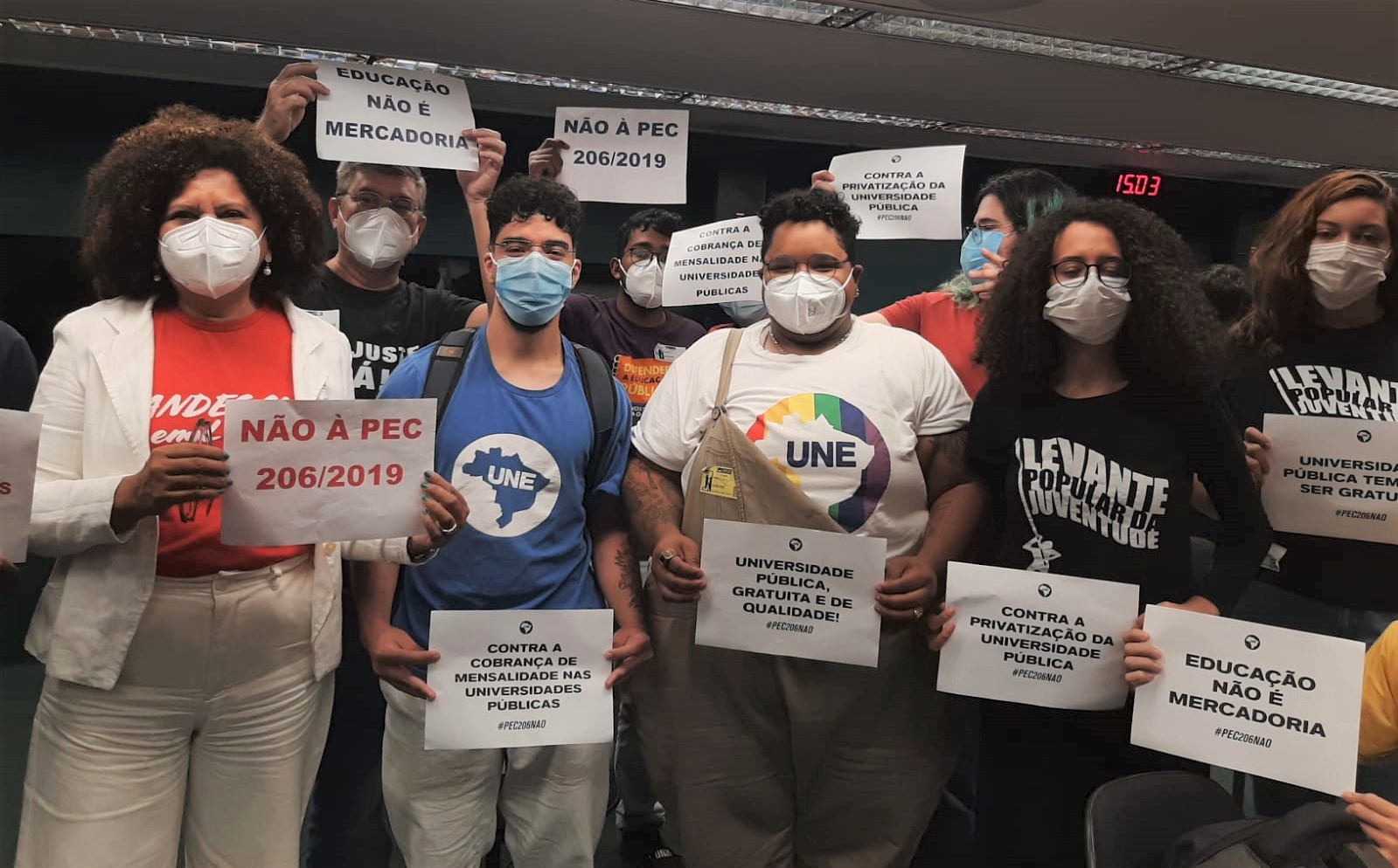 A Proposta de Emenda à Constituição (PEC) 206/19, que prevê a cobrança de mensalidades das universidades públicas foi retirada da pauta nesta terça-feira (24/05) na Comissão de Constituição, Justiça e Cidadania (CCJ) da Câmara dos Deputados. Entidades da educação e do movimento estudantil, entre elas a FASUBRA Sindical, protestaram no Congresso Nacional contra mais este ataque ao setor.