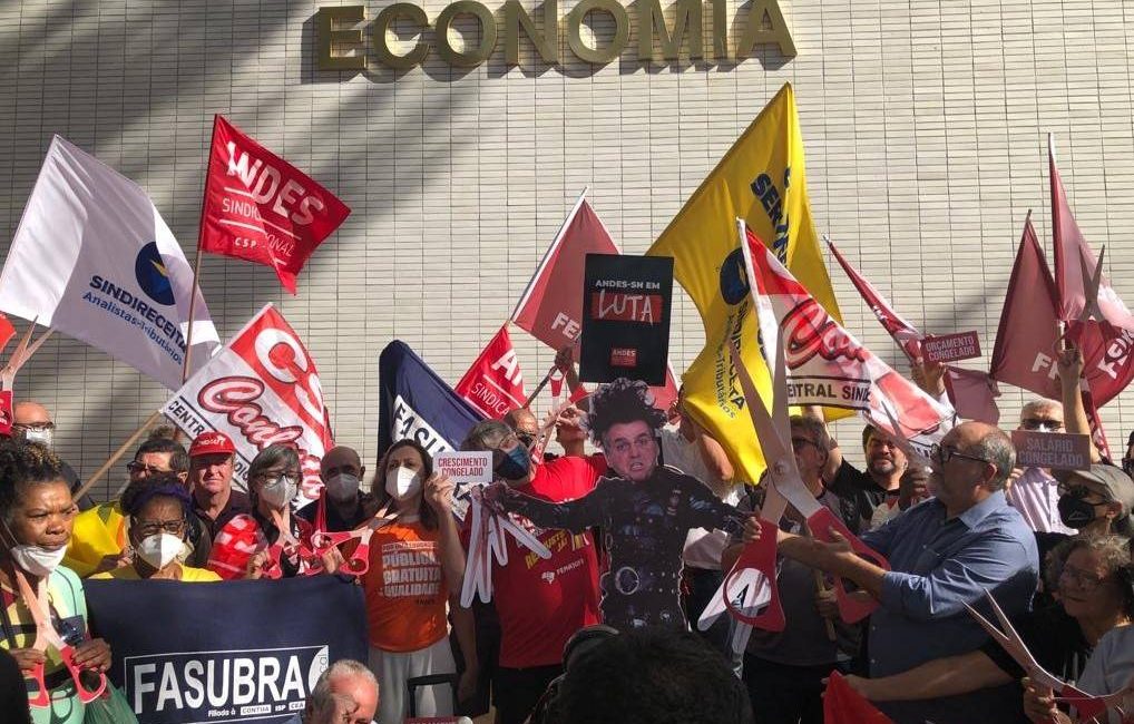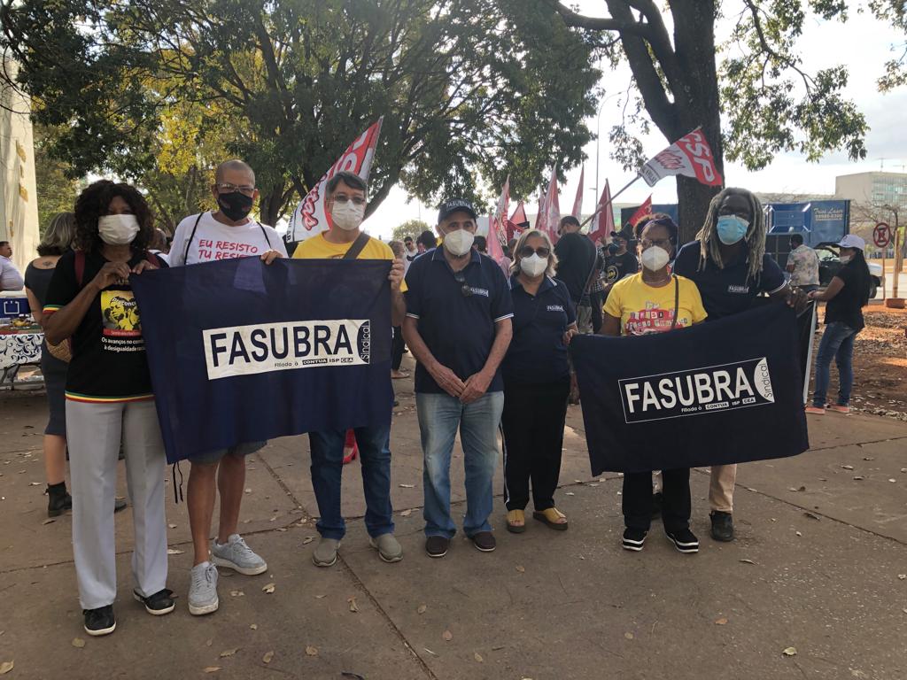 A FASUBRA participou de ato nesta terça-feira (2/8), em frente ao Ministério da Economia (Bloco C), em defesa dos serviços públicos e da democracia. O ato faz parte da Jornada de Lutas dessa semana das trabalhadoras e trabalhadores do serviço público federal.