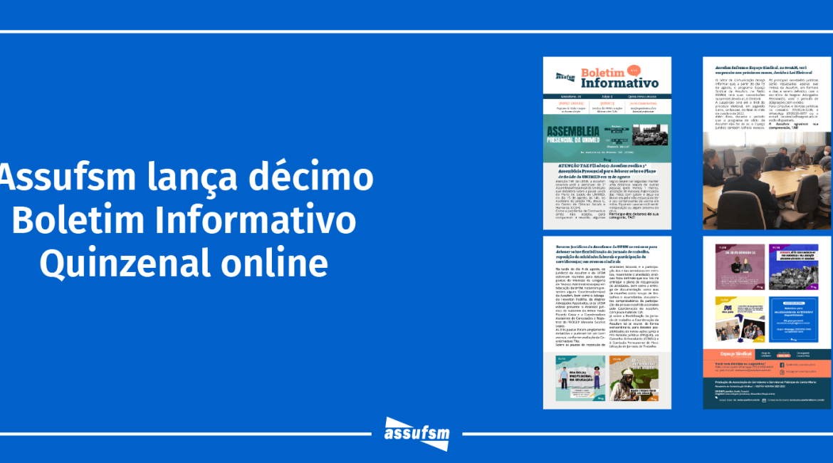 A Coordenação da Assufsm, gestão 2021-2023, em parceria com o Setor de Comunicação do Sindicato, lança hoje a Edição de número 10 do Boletim Informativo Online.