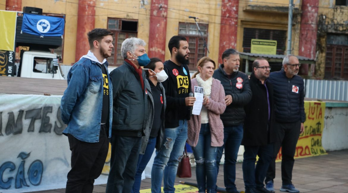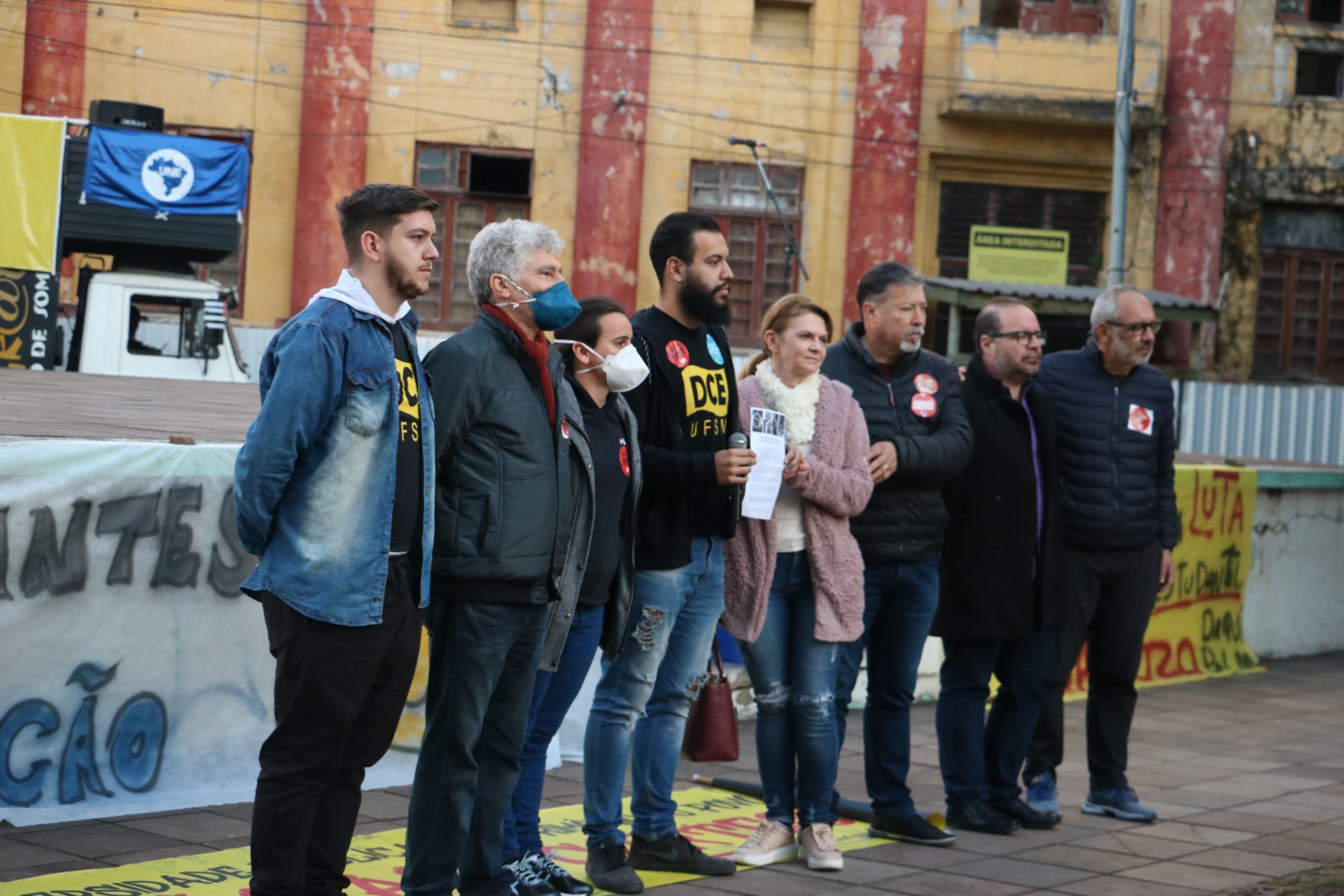 O ato foi chamado pelo Diretório Central dos e das Estudantes (DCE) da Universidade Federal de Santa Maria (UFSM) e contou com representações como a UEE – União Estadual dos e das Estudantes, Sedufsm, Assufsm, Atens, APG, movimentos e coletivos políticos e estudantis diversos.
