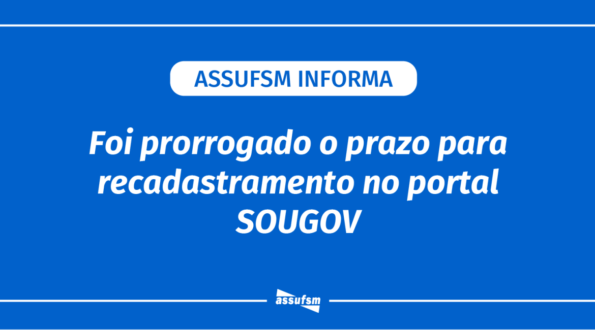 A Assufsm informa que o prazo para o recadastramento único da Assistência à Saúde Suplementar, no portal do SOUGOV, foi prorrogado para 31 de outubro de 2022.