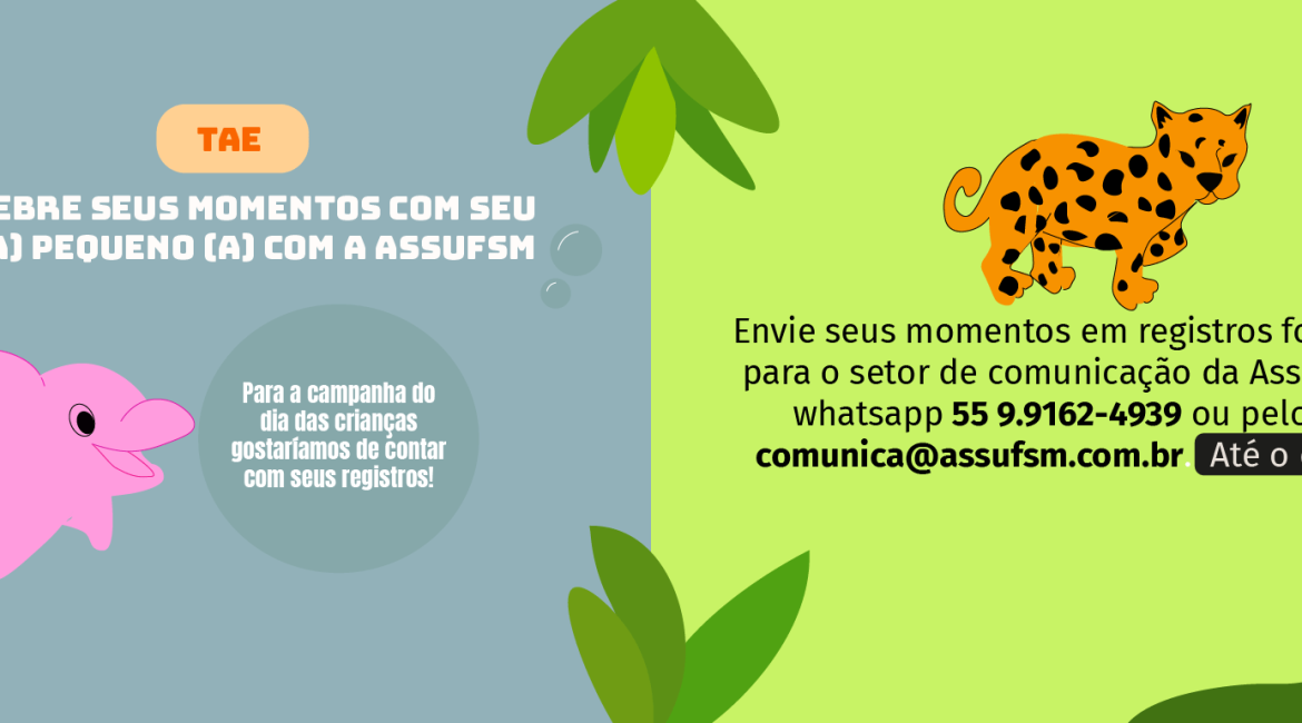 Técnico Administrativos e Administrativas em Educação da UFSM (TAEs-UFSM), a Assufsm deseja convidar você a participar da Campanha de Dia da Criança para mostrar seu e sua pequena para o mundo. Por isso, precisamos da sua colaboração!