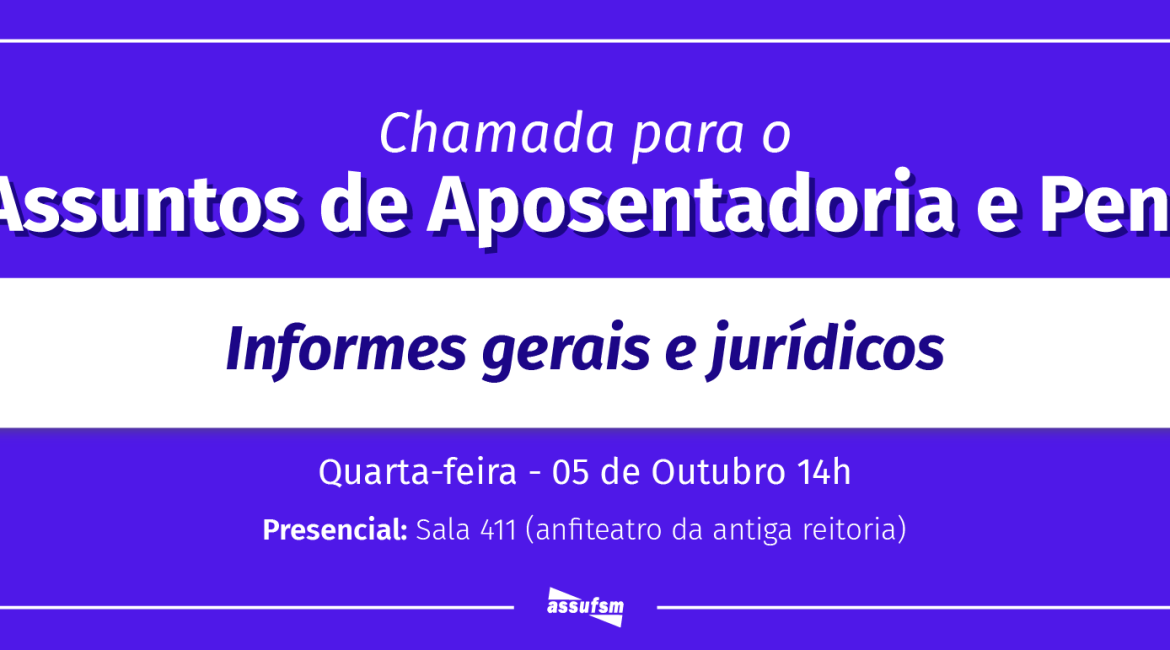 O Grupo de Trabalho (GT) Assuntos de Aposentadoria e Pensão se reunirá na próxima quarta-feira, 5 de outubro, para tratar de pautas jurídicas de interesse da categoria e realizar informes gerais.