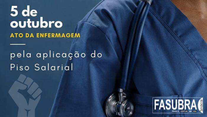 A FASUBRA Sindical apoia o ato que será realizado na próxima quarta-feira (5/10), a partir das 10h, pelas entidades nacionais que compõem o Fórum Nacional da Enfermagem (FNE), para que se cumpra o piso salarial da enfermagem. O ato será no Congresso Nacional e terá como pauta principal a votação das fontes de custeio para pagamento do piso salarial da enfermagem pelo Senado Federal, prometido pelo presidente Rodrigo Pacheco (PSD/MG). A enfermagem também luta pela derrubada do veto ao reajuste anual do piso.