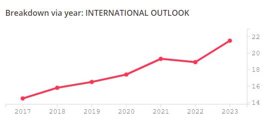 A UFSM também obteve bons resultados em “Perspectivas internacionais”, que avalia a capacidade da instituição de atrair estudantes de graduação, pós-graduação, docentes e pesquisadores internacionais e publicações realizadas por eles, obtendo 21.5 pontos. No quesito “Renda da Indústria” a análise é feita sobre a capacidade de transferência de conhecimento entre a universidade e a indústria, através de pesquisas, inovações, invenções e consultorias. Aqui a UFSM obteve 37.8 pontos.