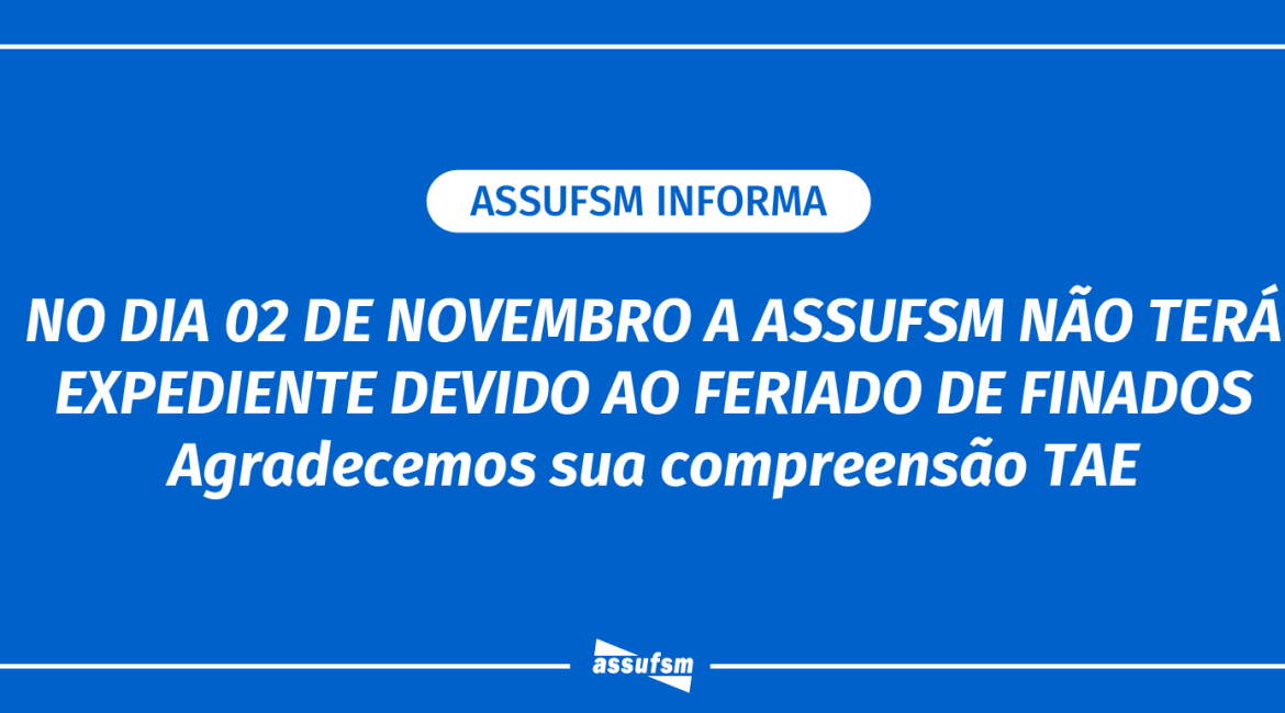 TAE, atenção. No dia 2 de novembro, a Assufsm não terá expediente devido ao feriado do Dia de Finados.